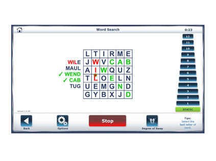 Move the avatar with weight shifts to catch the digital ball. Patients train with random throws, or in a pattern to enhance motor control.
